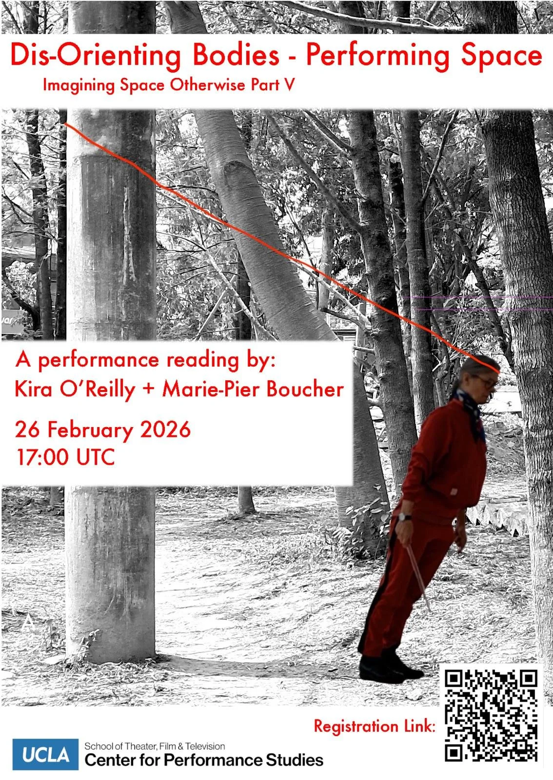 A performance reading of two voices exploring performance as a mode of planetary attachment and as a method of bodily and spatial dis-orientations. Offering a series of propositions informed by their correspondences across time and space, their dialogue explores a poetics of physicality, mutability, and alterity.